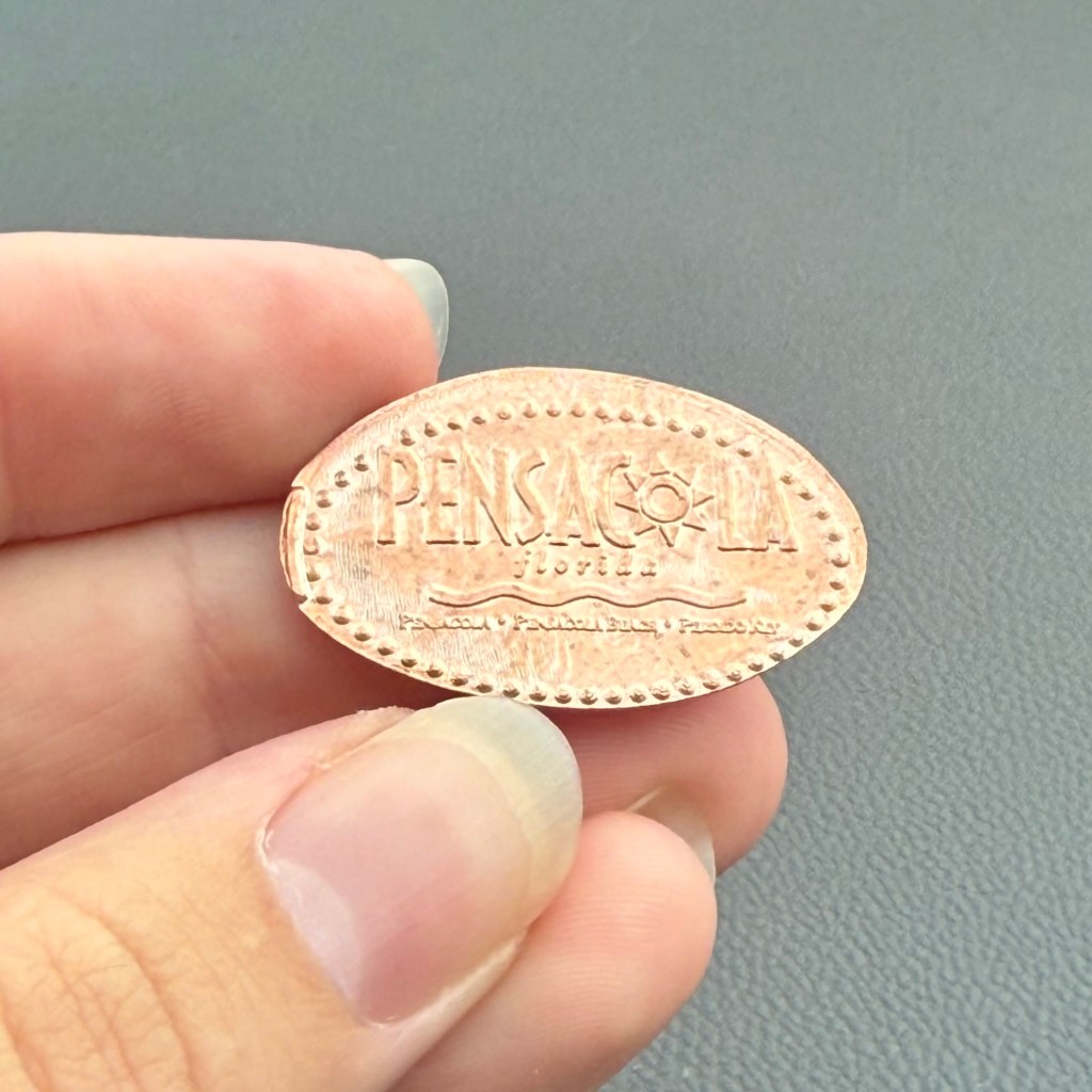The next morning, we kicked things off at the Pensacola Welcome Center. It was the perfect place to grab maps, tips on things to do, and even a few coupons. But the real treasure? A pressed penny machine – because no trip of ours is complete without adding to the collection.